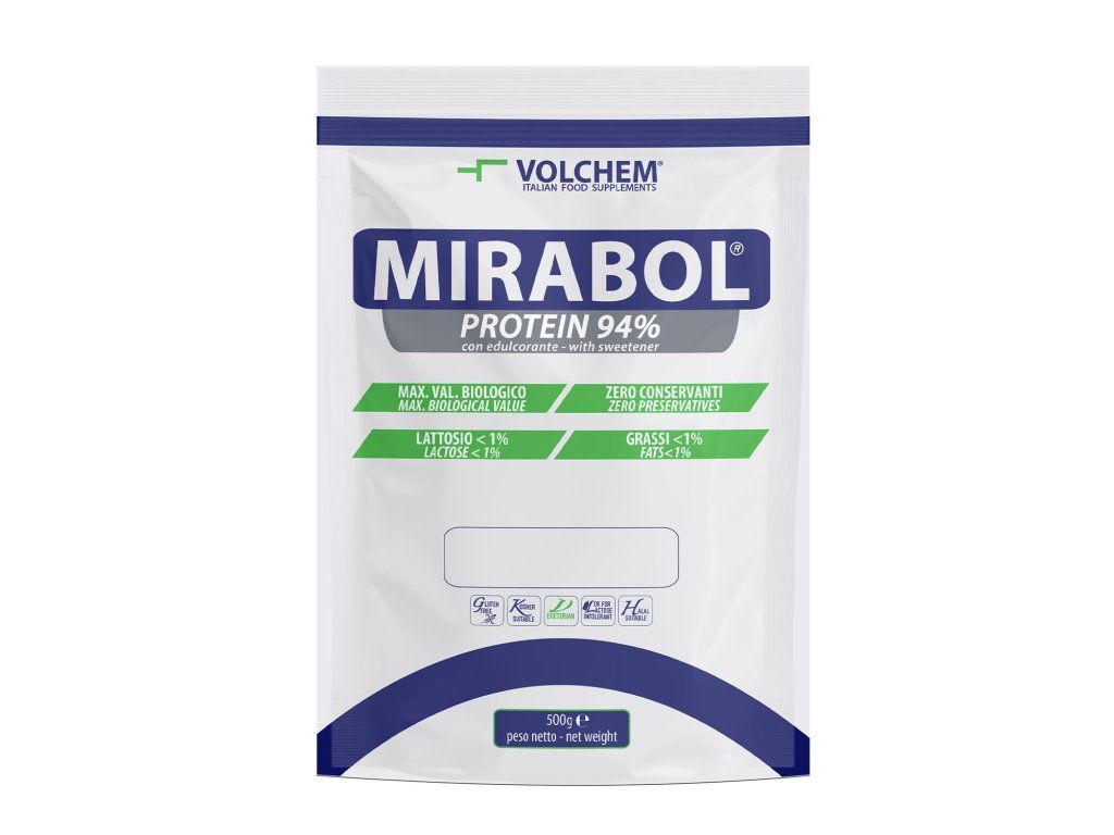 VOLCHEM Mirabol Protein 94 obsahuje kombinaci kaseinu, syrovátkové a vaječné bílkoviny. Obsah bílkovin v sušině je u tohoto produktu 94 % a v celkovém obsahu to je 89 %. Obsah mléčného cukru - laktózy je pod 1 %. Celkový obsah cukrů 1 % a tuků je zcela zanedbatelný. Díky kombinaci různých typů bílkoviny bylo dosaženo postupného trávení těchto bílkovin. Mirabol Protein 94 doporučujeme používat ve večerních hodinách nebo jako doplněk pestré stravy v případě nízkokalorické diety i během dne. V takovém případě pomáhá udržovat pocit sytosti.