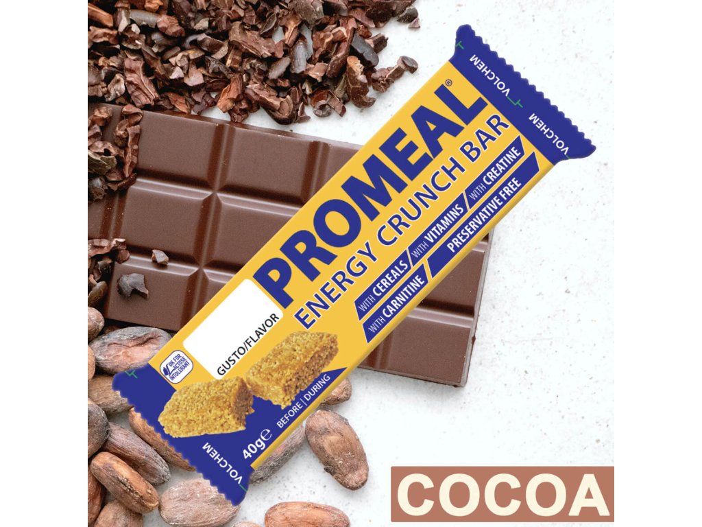 Volchem Promeal Energy Crunch Bar je energetická tyčinka s vysokým obsahem komplexních sacharidů, obohacená o L-karnitin a vitamíny. Je ideální rychlý zdroj energie před nebo během fyzické aktivity. Díky absenci polevy si zachovává konzistenci i při vysokých teplotách.
